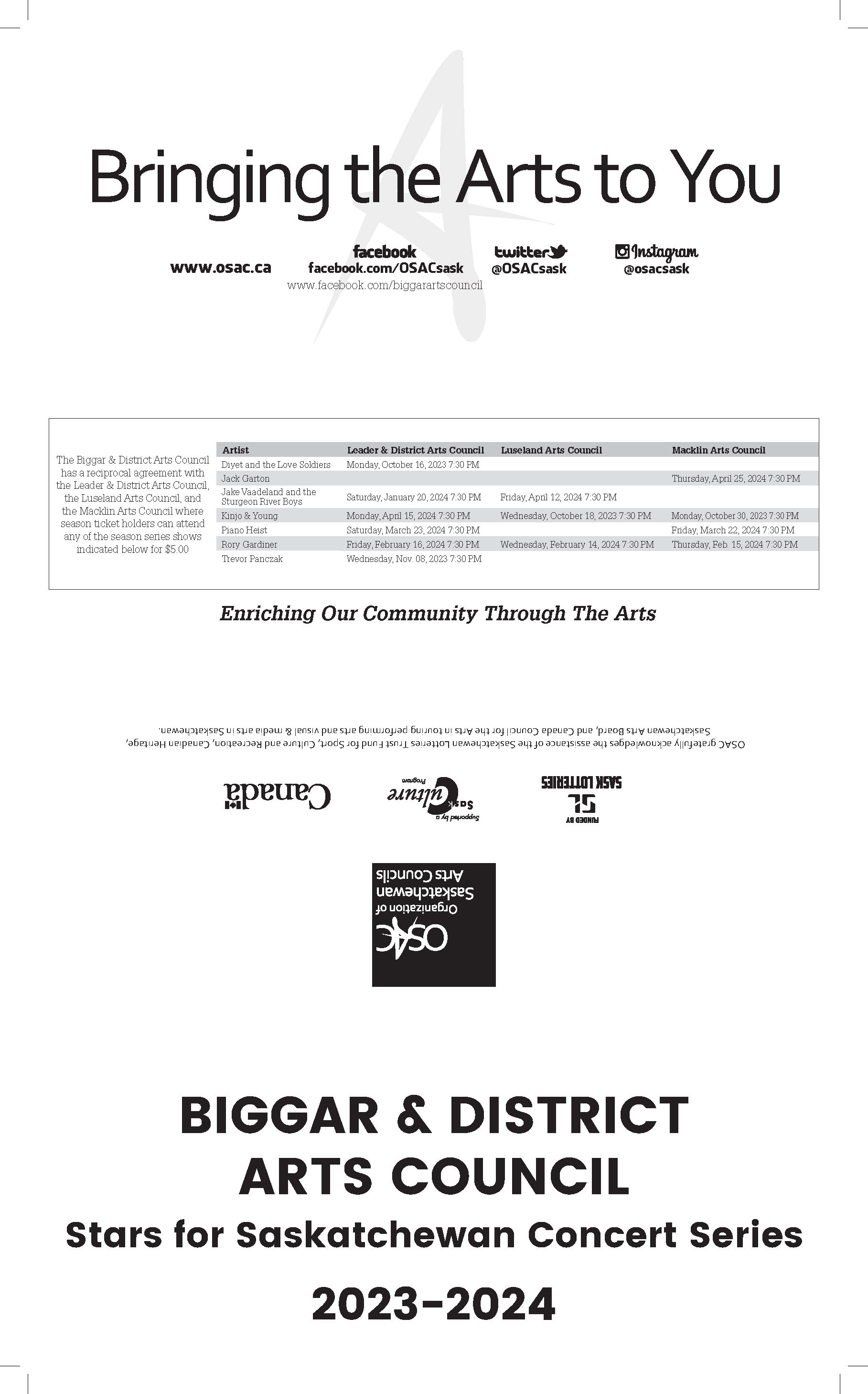 OSAC can produce brochures and colour posters for your arts council. The content including the artists, venues and any other required information is due 6 weeks prior to your last performance on the current season or your required by date noted on the form. The brochure production costs are subsidised by about 20% each year. Costs are indicated on the quantities form below.